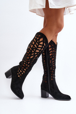 Proutěné kozačky na podpatku z semiše hnědé Jolenna