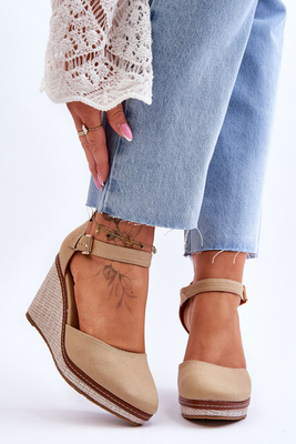 Kožené sandály na klínu Comfort Shoe Béžove Verola