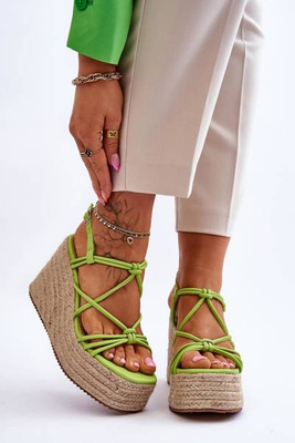 Suede Espadrilky sandály na klínu Zelená Cammer