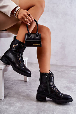 Dámské kozačky s ozdobami vázanými černe Leonese