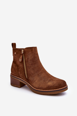 Zamszové Boty Na Podpatku S Klipem Brązové Bronte