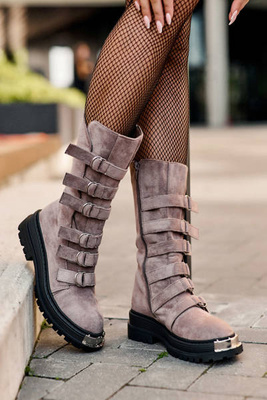 Zamšené Dámské Boty Sztyblety Beżové Alexetta