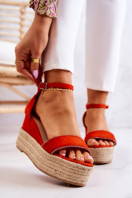 Lehké sandály se zavazováním na klínovém podpatku Červené Marriett