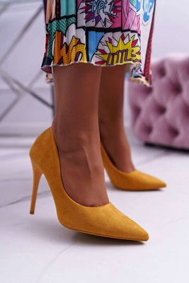 Dámské semišové lodičky na jehlovém podpatku žluté Yanna