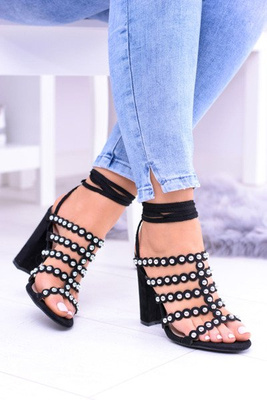 Lu Boo Černé Sandály Zirkony Semišové Lambada