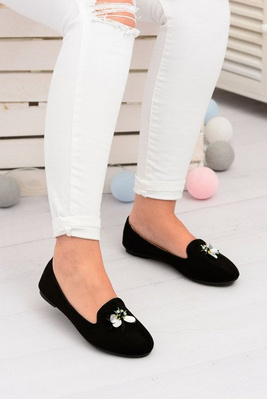 Zamszowe Czarne Damskie Balerinki Lordsy Veni