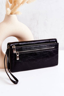 Velká Kožená Peněženka Na Zip Černá Loreaine