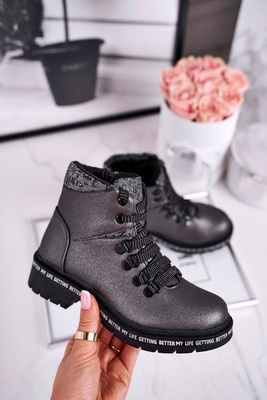 Dětské Boty zateplené Se Zipem Lakované Černé Say You