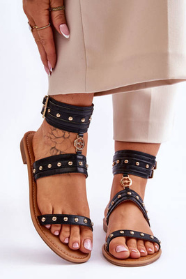 Dámské ploché sandály s ozdobným páskem Černé Berry
