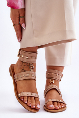 Dámské ploché sandály s ozdobným páskem Hnědé Berry