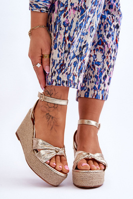 Dámské kožené sandály na podpatku na platformě zlaté Verda
