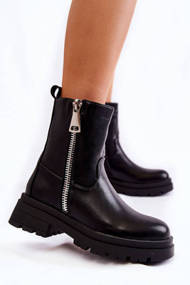 Módní vysoké kožené kozačky s zipem černe Daffy