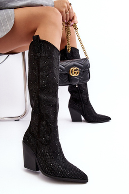 Dámské kovbojské kotníkové boty s džetami černé Poelstra