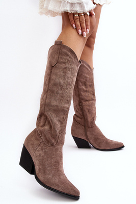Dámské kovbojské kozačky na sloupu tmavě béžové Sloana