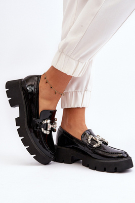 Dámské lakované mokasíny s ozdobou Černé Arsaba