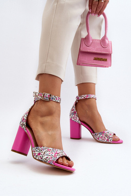 Sandály Na Podpatku S Květinami Fuksia Vitamella