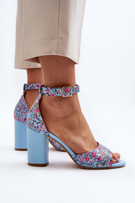 Sandály Na Podpatku S Kytkami Modré Vitamella