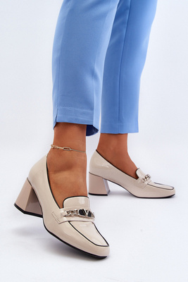 Lakované lodičky na nízkém podpatku s ozdobou béžové Makki