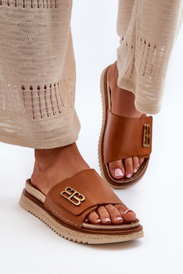 Zazoo 50101 Dámské Kožené Žabky Na Platformě Hnědé