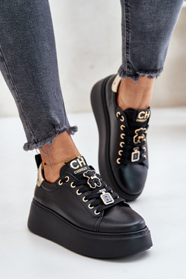 Dámské Kožené Tenisky S Připínáčky Na Platformě CheBello 4596 Černé