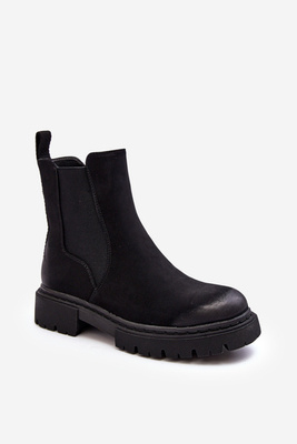 +1Ocieplené Semišové Kozačky Na Plochém Podpatku SBarski HY07-31 Černé