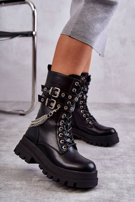 Módní dělnické boty s řetízkem černá Solesso