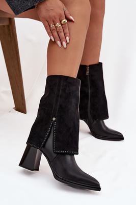 Zateplené kotníkové boty na podpatku z pravé kůže Vinceza 66812 Černé
