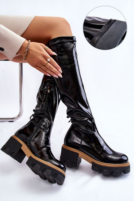 Dámské lakované kozačky na podpatku Cerné Carrice