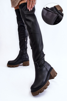 Dámské kožené vysoké kozačky na stehna černé Georgette