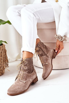 Semišové Prolamované Boty Maciejka Béžové 05033-04