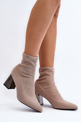 +1Dámské zateplené kozačky se zvrásněným svrškem na sloupku béžové Shavy