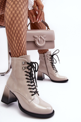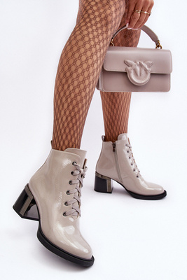 +2Leštěné šněrovací botky na podpatku SBarski MR870-15 světle šedé