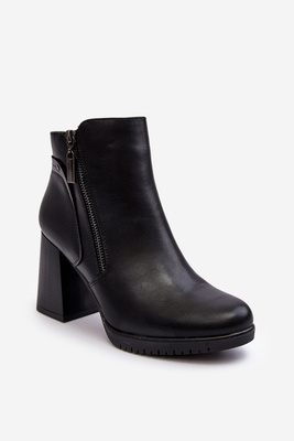 Kožené dámské kotníkové boty na podpatku s sponou černou Bordda