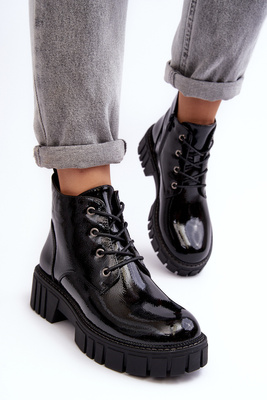 +1Ocieplane Kožené Boty Dámské Na Platformě Černé Lemar Jevette
