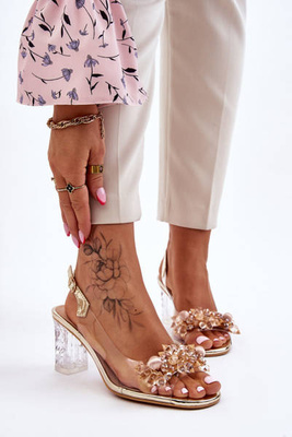 Módní sandály s krystaly na robustních podpatcích béžová Garrett