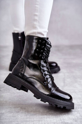 Lakované šněrovací kozačky s výřezy Černe Fabiana