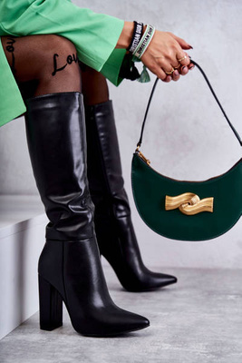 Semišové vysoké kozačky na vysokých podpatcích Laura Messi 2527 Černá