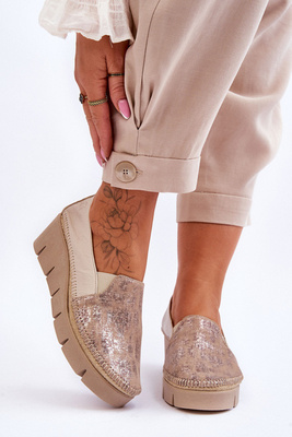 Dámská kožená sportovní obuv na platformě bíle Caressa