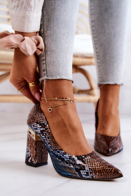 Kožené lodičky z hadí kůže kaštanové Alissa
