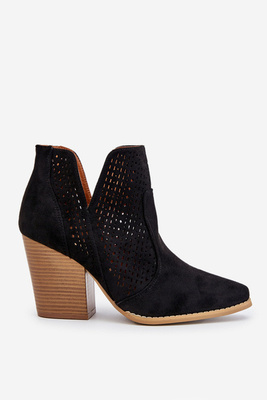 +3Módní semišové prolamované boty na vysokém podpatku Černá Genevi
