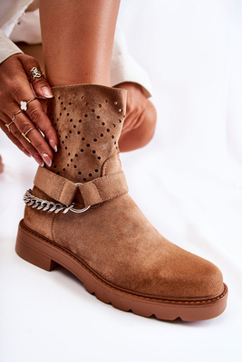 Semišové kovbojské boty s prolamovaným vzorem hnědá Naya