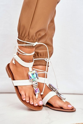 Dámské Sandály Ploché Eko-semišové Boho Béžové Lucami