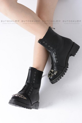 Lu Boo Czarne Dziecięce Botki Za Kostkę z Cyrkoniami Pu LittleCarrie