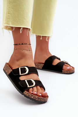 Dámské sandály s přezkou z ekokože z černého zamszu Laeltia