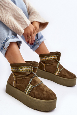 +2Dámské sněhové boty na tlusté podrážce se šněrováním, zelené Milson