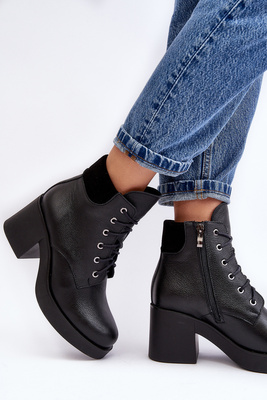 Dámské kožené boty na nízkém podpatku Zazoo 4111 černé