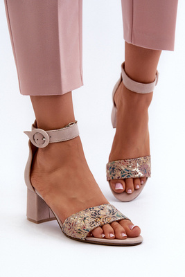 Dámské semišové sandály na podpatku Maciejka 05870-04 Béžová