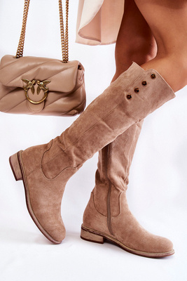 Dámské semišové kozačky na plochém podpatku Béžové Fiorenz