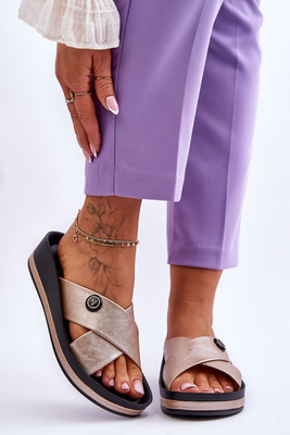 Dámské Kůže sandály na nízkém podpatku zlaté Quinn