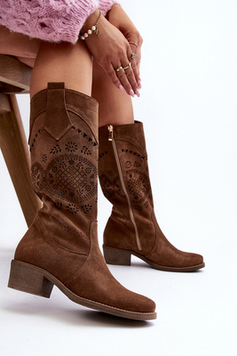 Semišové cowboy boty s nízkým podpatkem Zazoo 3329 Cappucino